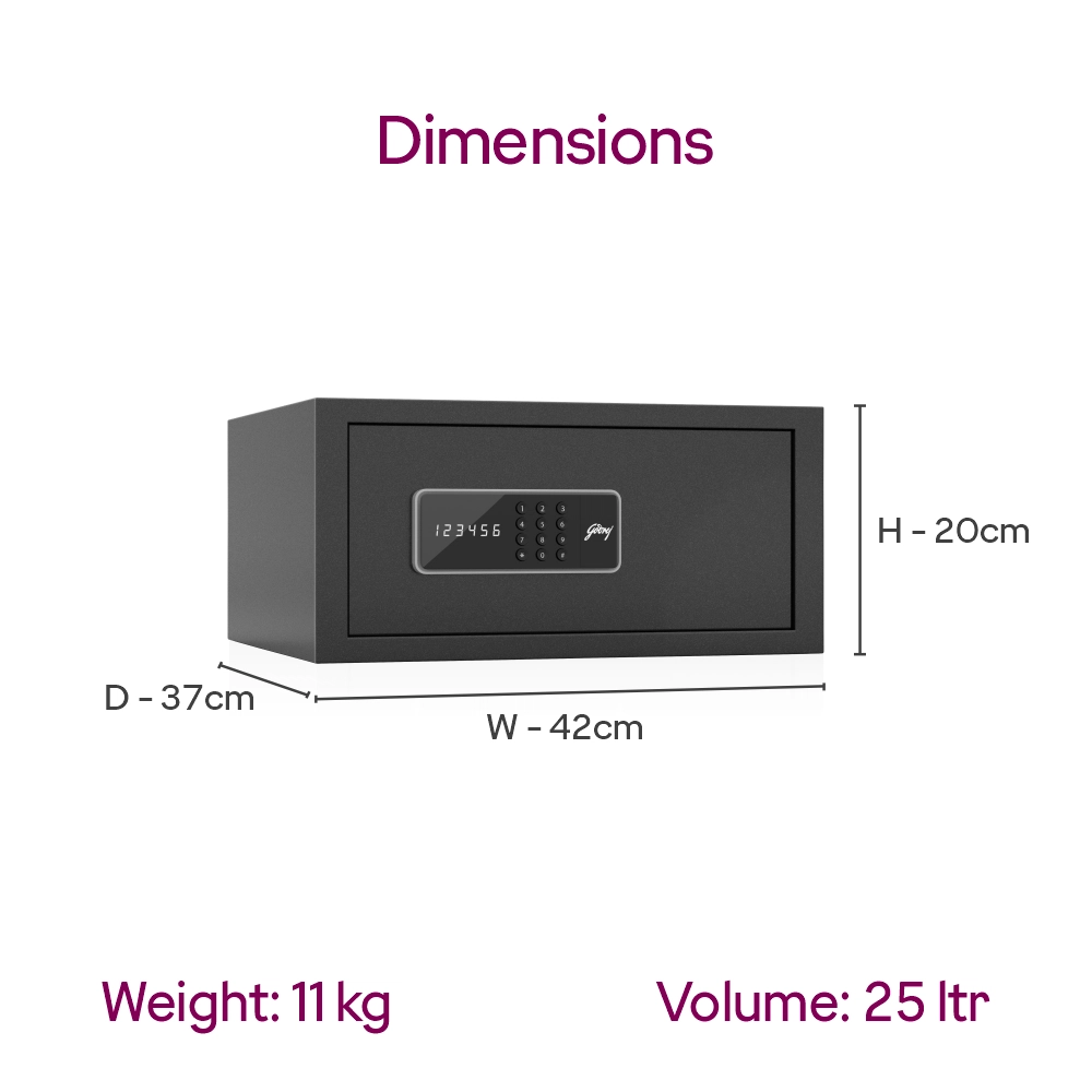 Keep your valuables secure with the Godrej NX Pro Digital 25L Home Locker, a modern and compact security solution designed for your home or office. Crafted with durable steel and a sleek ebony finish, this digital safe combines style with top-notch protection. Itβs ideal for storing jewelry, important documents, cash, and other valuables.
